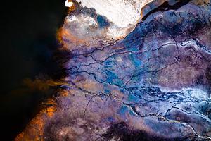 An abstract aerial view of Lake Dillon, CO as the ice melts.