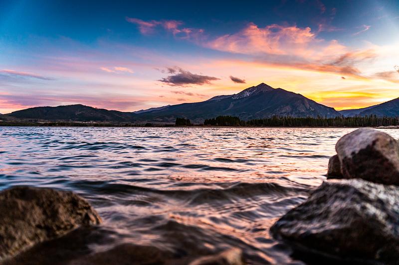 A fall sunset on the shores of Lake Dillon, CO