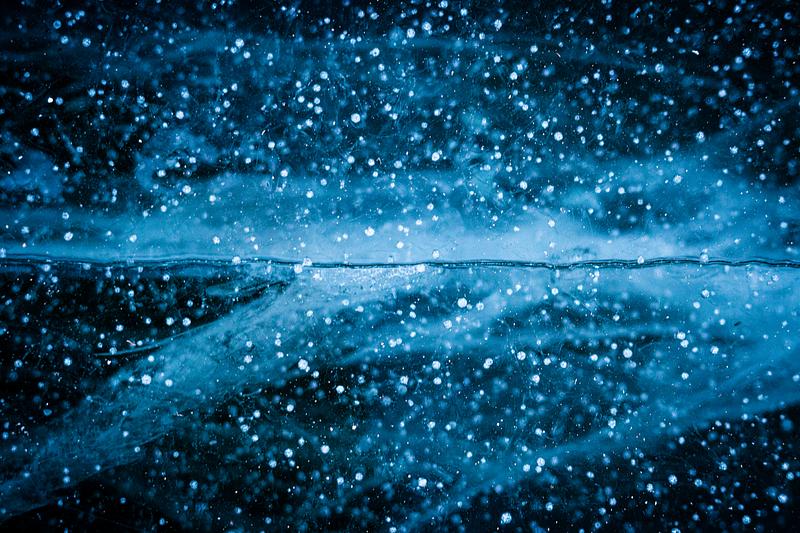 A frozen crack and ice bubbles on Lake Dillon, CO