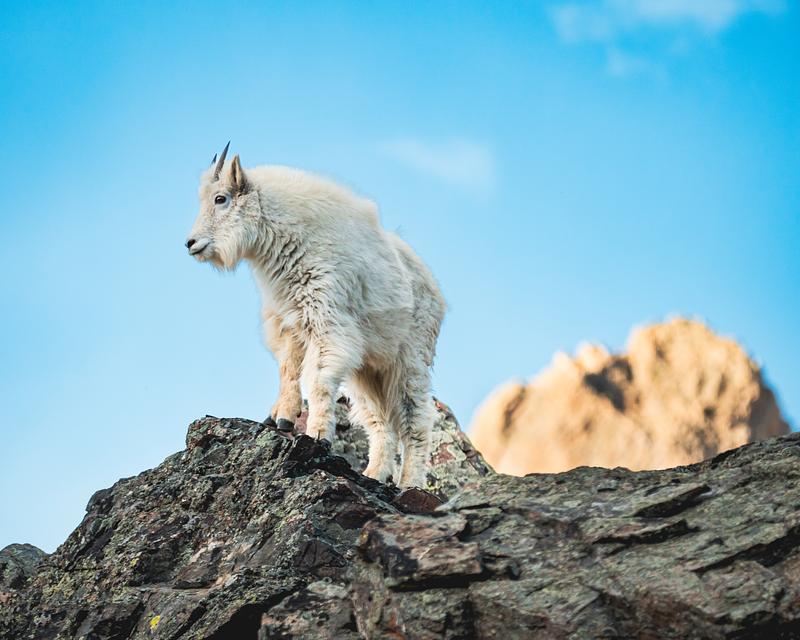 A mountain goat peering over the Tenmile Range near Frisco, CO